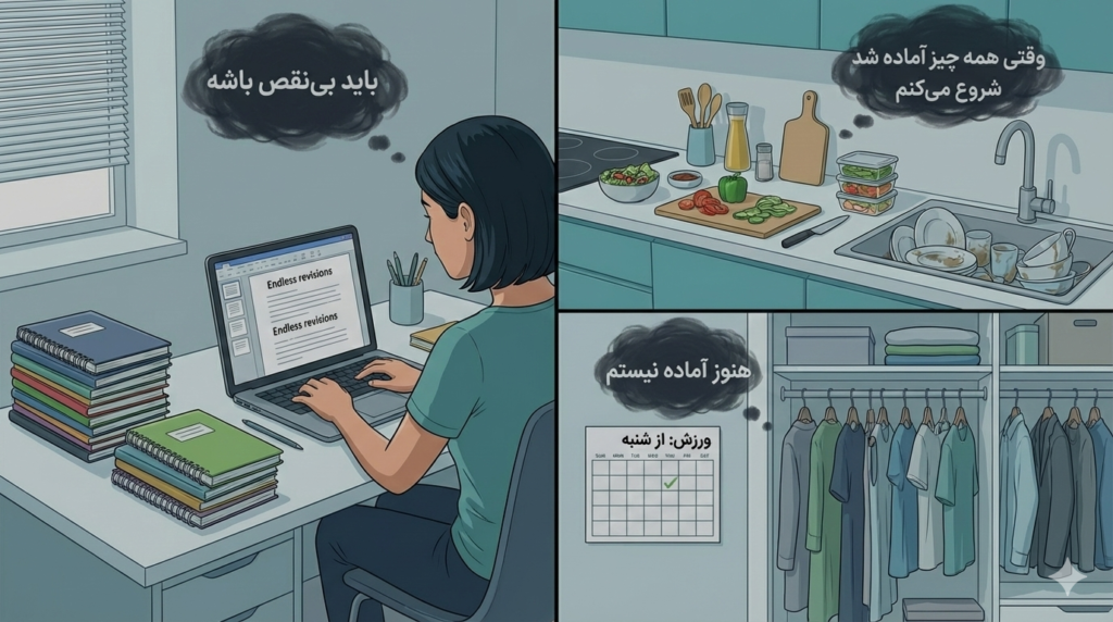 - کمالگرایی پنهان میگوید: «الان وقتش نیست، بعداً بهتر انجامش میدم.»
